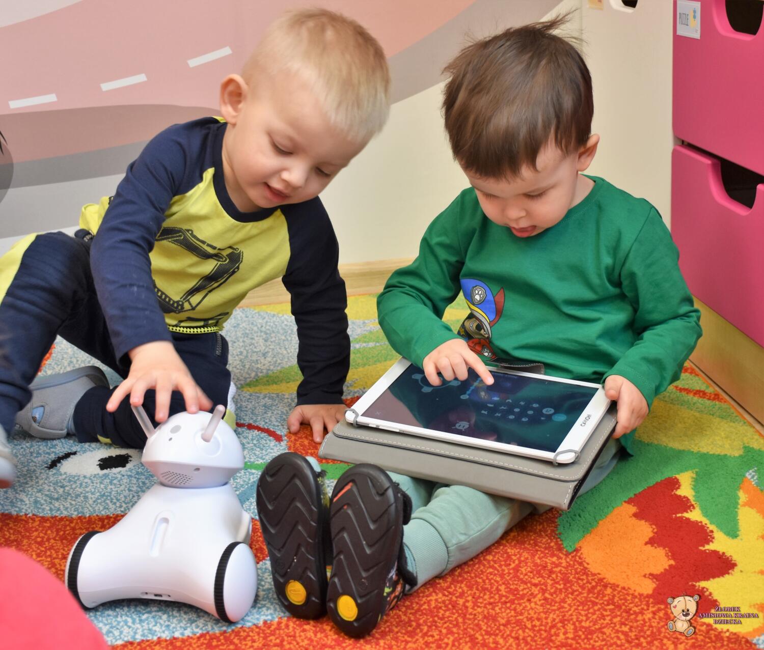 Dziś odwiedziła nas ciocia Natalia, która poprowadziła zajęcia z podstaw robotyki. Dzieci zapoznały się z przyniesionymi robotami, które z początku wyglądały dość dziwnie. Wspólnie odgadywaliśmy wydawane przez nie dźwięki zwierząt oraz kolory, które zmieniały się na jego czułkach. Na koniec zajęć dzieciaki same sterowały robotami świetnie się przy tym bawiąc.