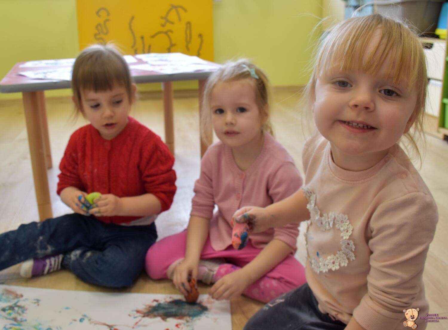 Dziś Amisiaki z pomocą cioci Klaudii stworzyły kreatywne stempelki. Następne przystąpiły do tworzenia swoich dzieł sztuki. Stemple wykonane były z balonów wypełnionych powietrzem, mąką, kaszą manną. Ponadto do stworzenia swoich prac plastycznych wykorzystały również swoje dłonie to była super zabawa !
