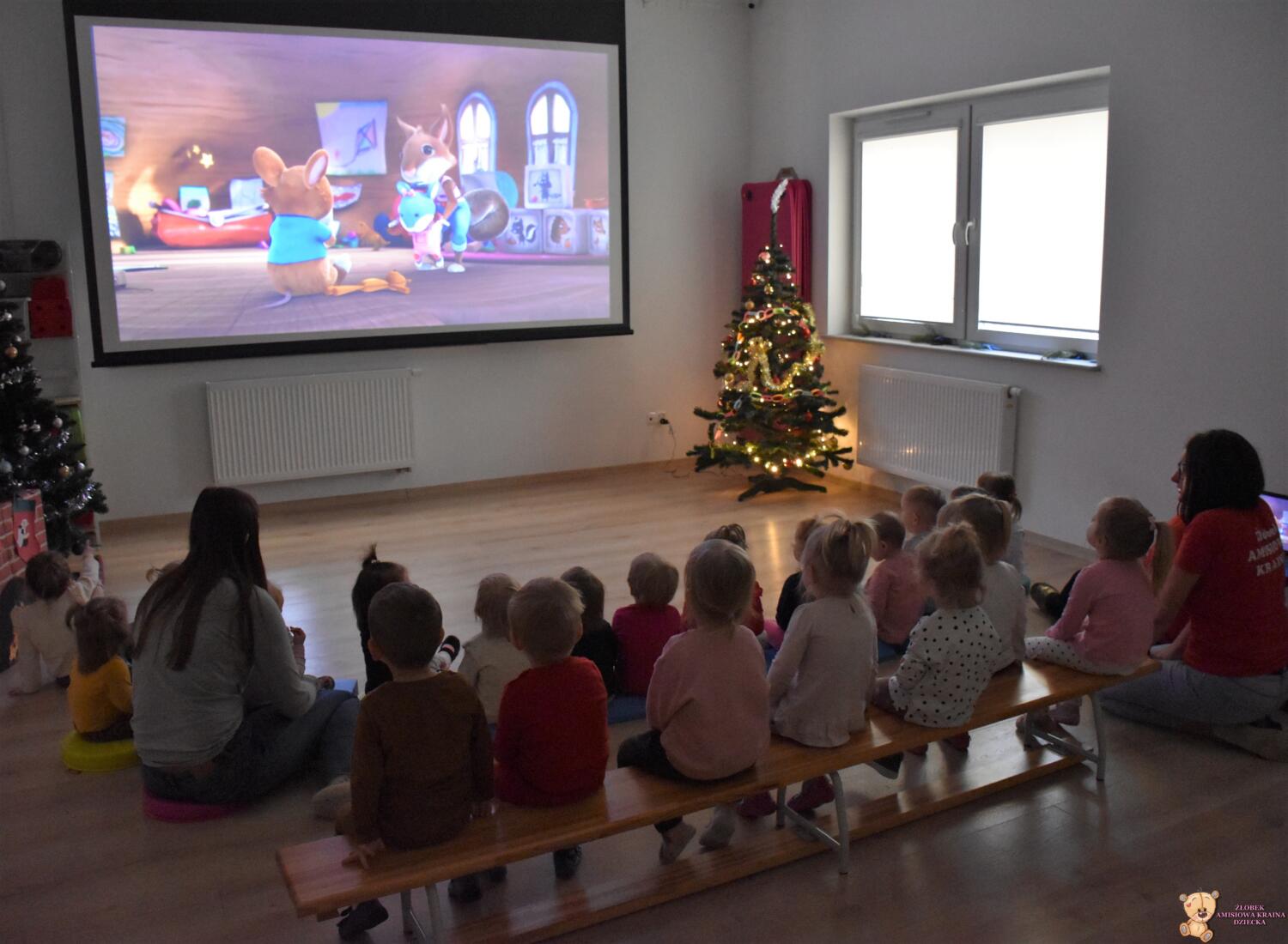Dziś na Bajkoterapii dzieci poznały bajkę o zwierzętach,jak je dokarmiać zimą.Obejrzelismy bajkę na wielkim ekranie,co sprawiło ,że poczuły się jak by były w kinie.Sprawilo to wiele radości i wrażeń naszym AMIsiakom.