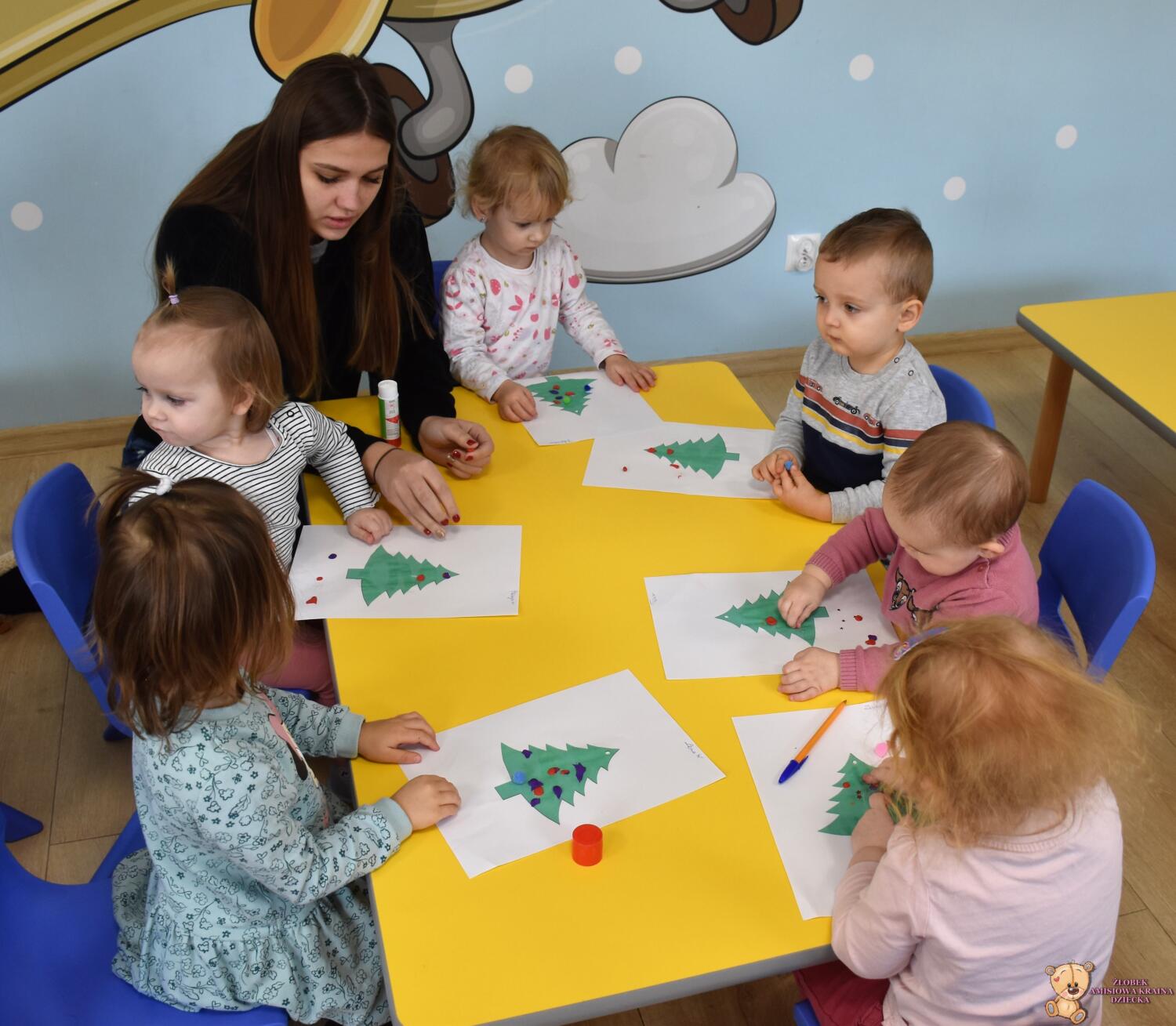 W dniu dzisiejszym Amisiaki wykonały pracę plastyczną w tematyce świątecznej. Dzieci wykonały choinki, wyklejając je plasteliną i ozdabiając według własnej inwencji twórczej kolorowymi pomponikami, cekinami i innymi ozdobami. To była wspaniała zabawa. 🎄
