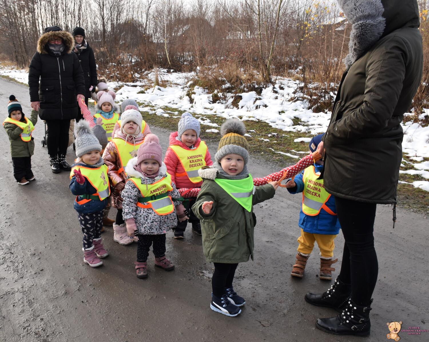 W dniu dzisiejszym AMIsiaki wybrały się na zimowy spacer, by w nawiązaniu do tematu tygodnia poszukiwać oznak zimy. Dzieci zawiesiły również karmnik na żłobkowym placu zabaw.