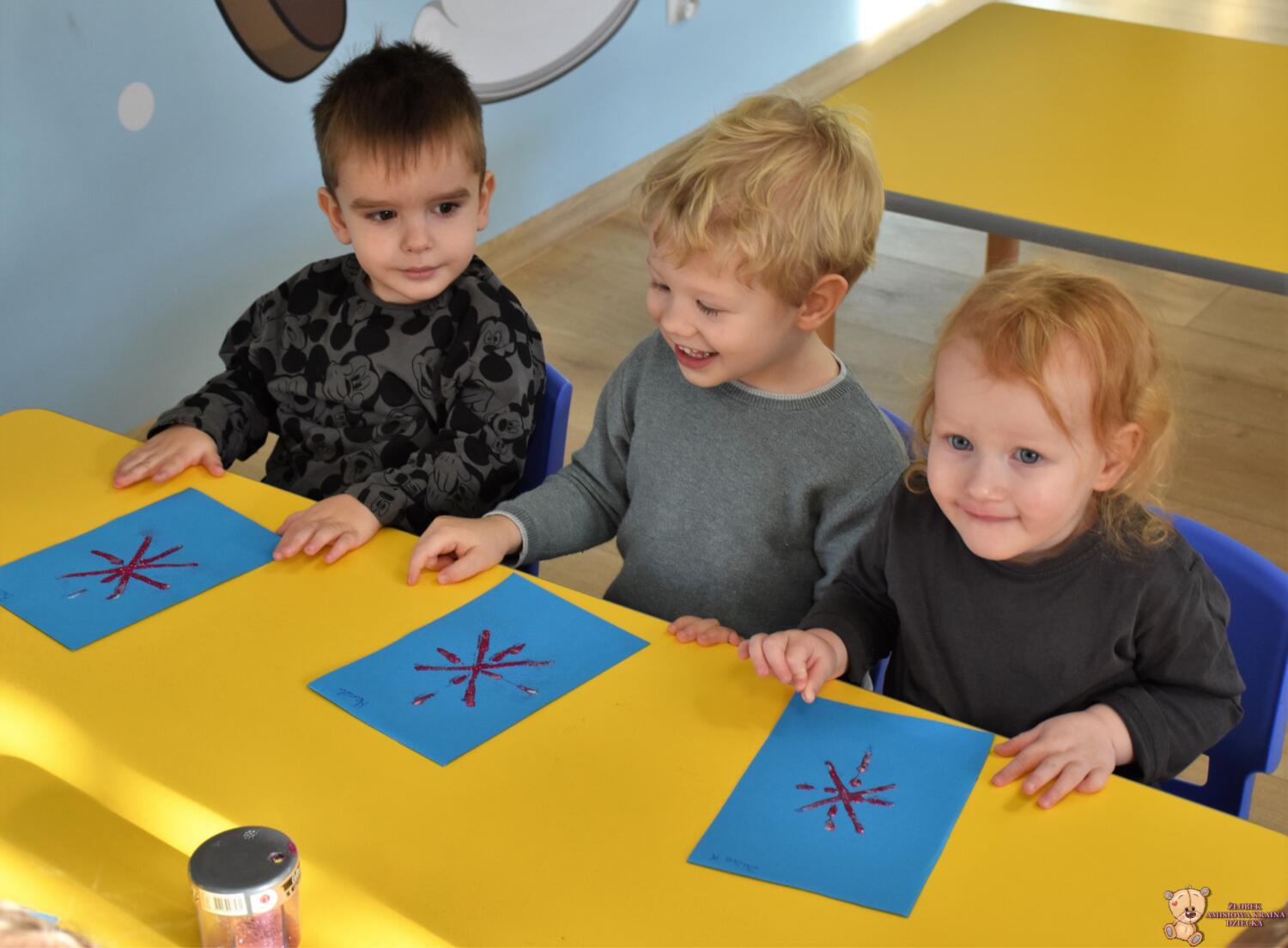 W dniu dzisiejszym nasze AMIsiaki wykonały pracę plastyczną z wykorzystaniem pasty do zębów i kolorowego brokatu. Dzieci stworzyły piękne, zimowe śnieżynki, rozwijając przy tym swoją motorykę małą.