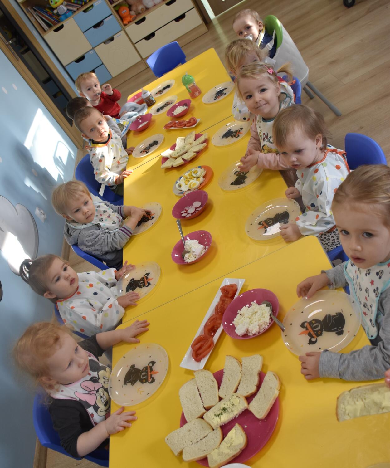 Dziś w żłobku Amisiowa Kraina Dziecka w Zduńskiej Woli obchodziliśmy dzień zdrowego śniadania. Amisiaki samodzielnie przygotowały kolorowe i pyszne kanapki, które zjadły z wielkim apetytem. Dowiedziały się również jak ważnym elementem dnia jest śniadanie, i że warto się zdrowo odżywiać.