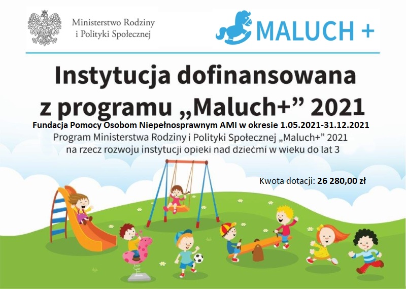 Projekt MALUCH+ 2021 Fundacja Pomocy Osobom Niepełnosprawnym AMI w ramach ogłoszonego przez Ministerstwo Rodziny, Pracy i Polityki Społecznej konkursu do Resortowego programu rozwoju instytucji opieki nad dziećmi w wieku do lat 3 „Maluch+” 2021 Moduł 4, otrzymało ze środków Budżetu Państwa dofinansowanie: w Żłobku AMIsiowej Krainie Dziecka w Zduńskiej Woli przy ul. Tischnera 45, w […]