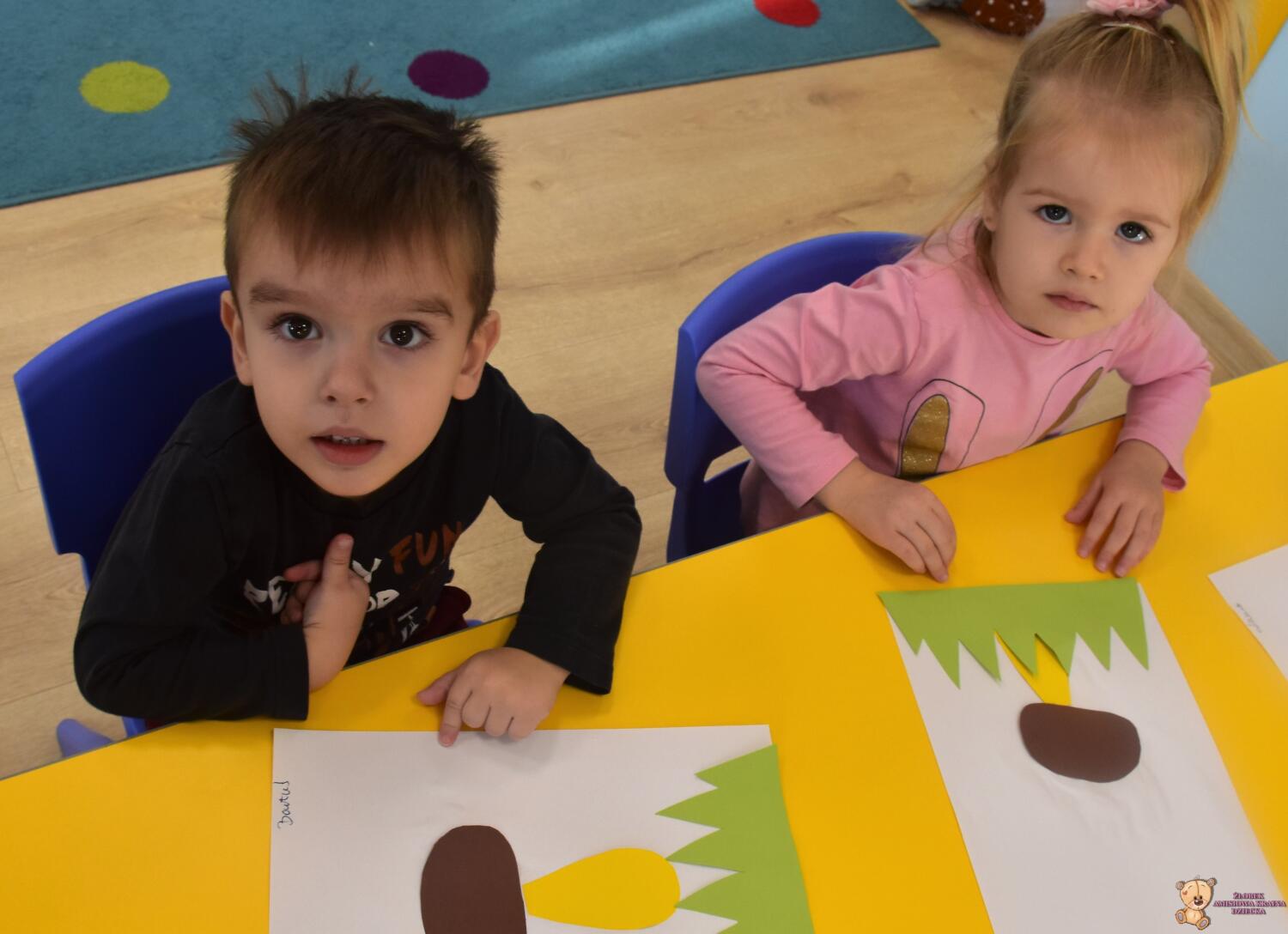Tematem tygodnia są grzyby. Dziś dziś dzieci jako pracę plastyczną wyklejały grzyby .
