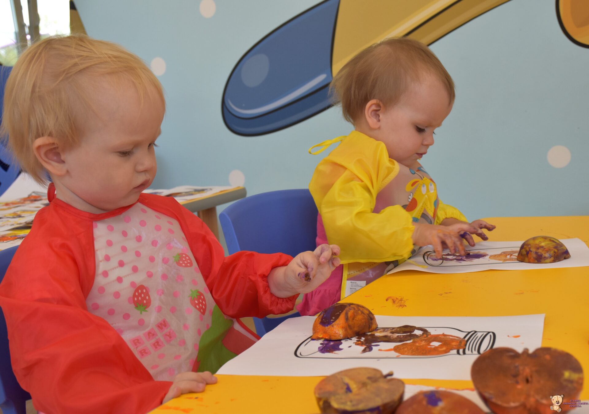 W dniu dzisiejszym dzieci wykonały pracę plastyczną związaną z tematem tygodnia. Dzieci maczały przekrojone owoce w kolorowej farbie, a następnie odbijały je na kartkach . W ten sposób powstały kolorowe słoiki z przetworami. 🍎🍏