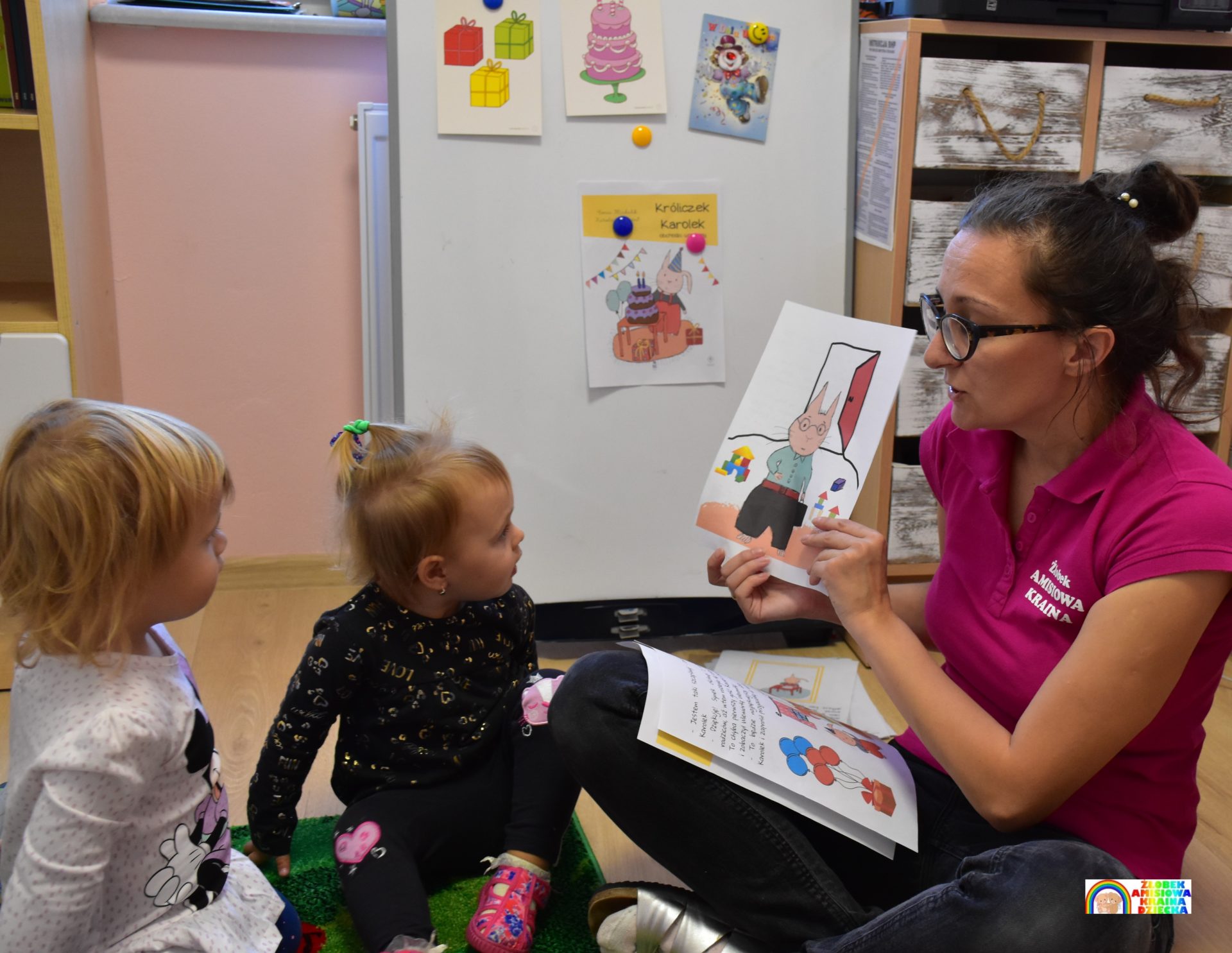 Tematem dzisiejszej bajkoterapii w Amisiowej Krainie Dziecka w Zduńskiej Woli, były Urodziny Króliczka Karolka. Dzieci dowiedziały się po co robi się urodziny i dlaczego dostajemy wtedy prezenty, poznały nowe zwroty grzecznościowe proszę i dziękuję.