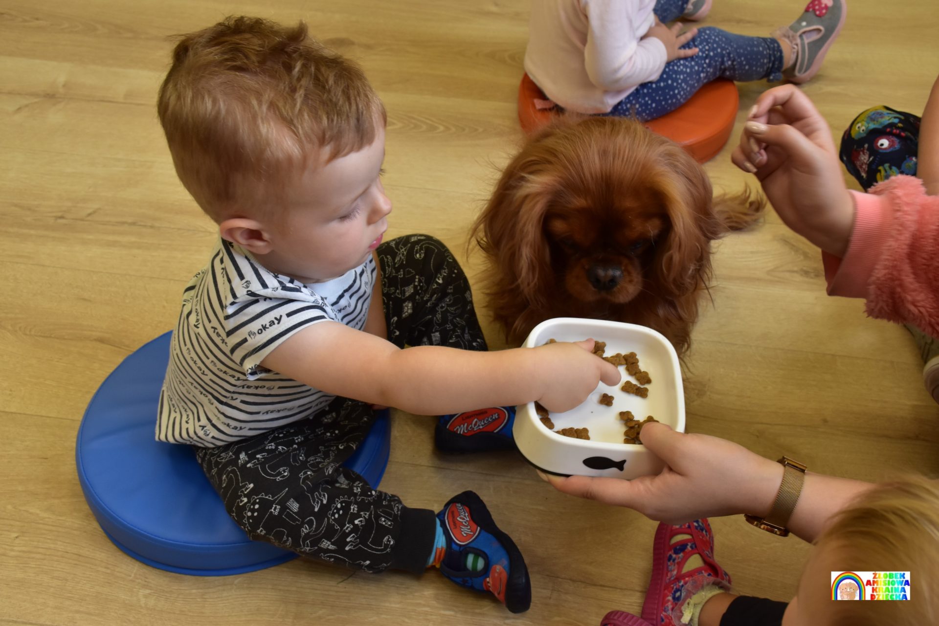 Dzisiejszego ranka rozmawialismy, jak należy opiekować się zwierzętami, oraz jakie są wobec nich obowiązki. Dzieci dowiedziały się, co należy dawać psiakom do jedzenia i jak należy myć im zęby. Później razem rozwijaliśmy nasze nowe umiejętności karmiąc 'Misię’.