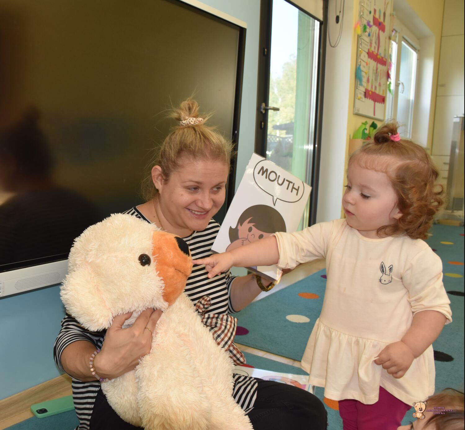 Dzisiaj na zajęciach zabawy z językiem angielskim mieliśmy tematykę o częściach ciała, które znajduja sie na głowie. Amisiaki poznały na początek słownictwo i pokazywały u siebie dane części ciała,a później wskazywały konkretne części ciała u Misia. Na sam koniec utrwalislimy poznane słownictwo na tablicy multimedialnej .