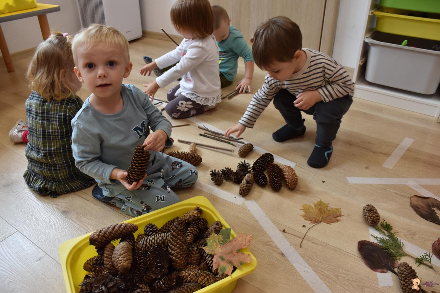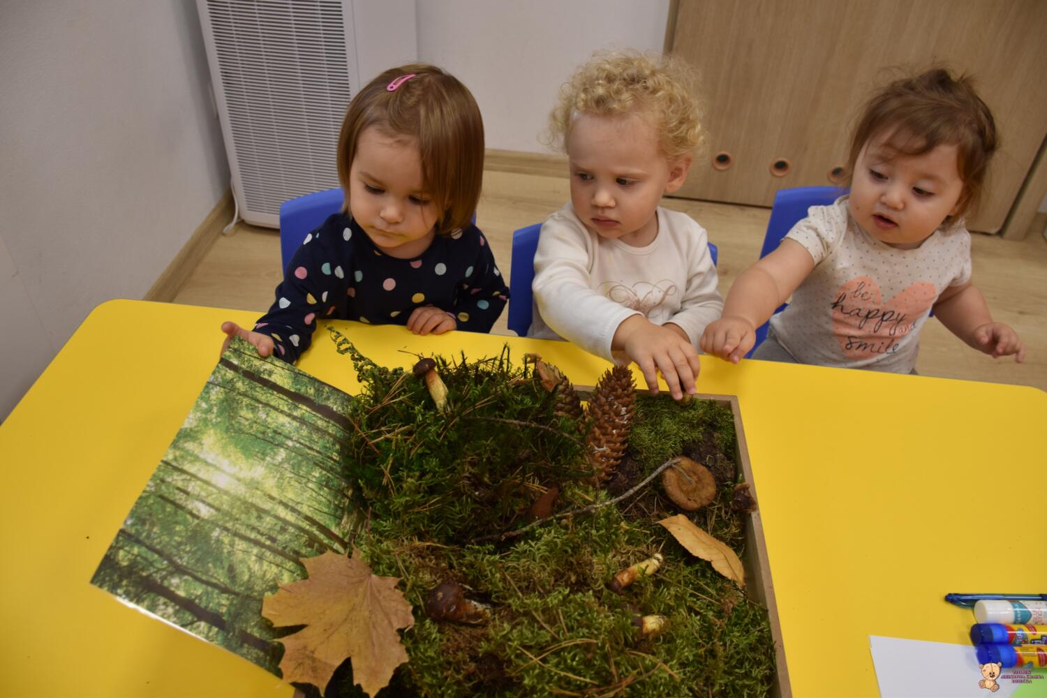 Dziś na zajęciach z metody Montessori Amisie tworzyły piękne drzewo z darów jesieni, które przyniosły do naszego żłobka W ruch poszły patyki, szyszki, kasztany, jarzębina, żołędzie, szyszki oraz orzechy. Praca była zespołowa i miała na celu uczyć nasze Maluszki współpracy i komunikacji w grupie