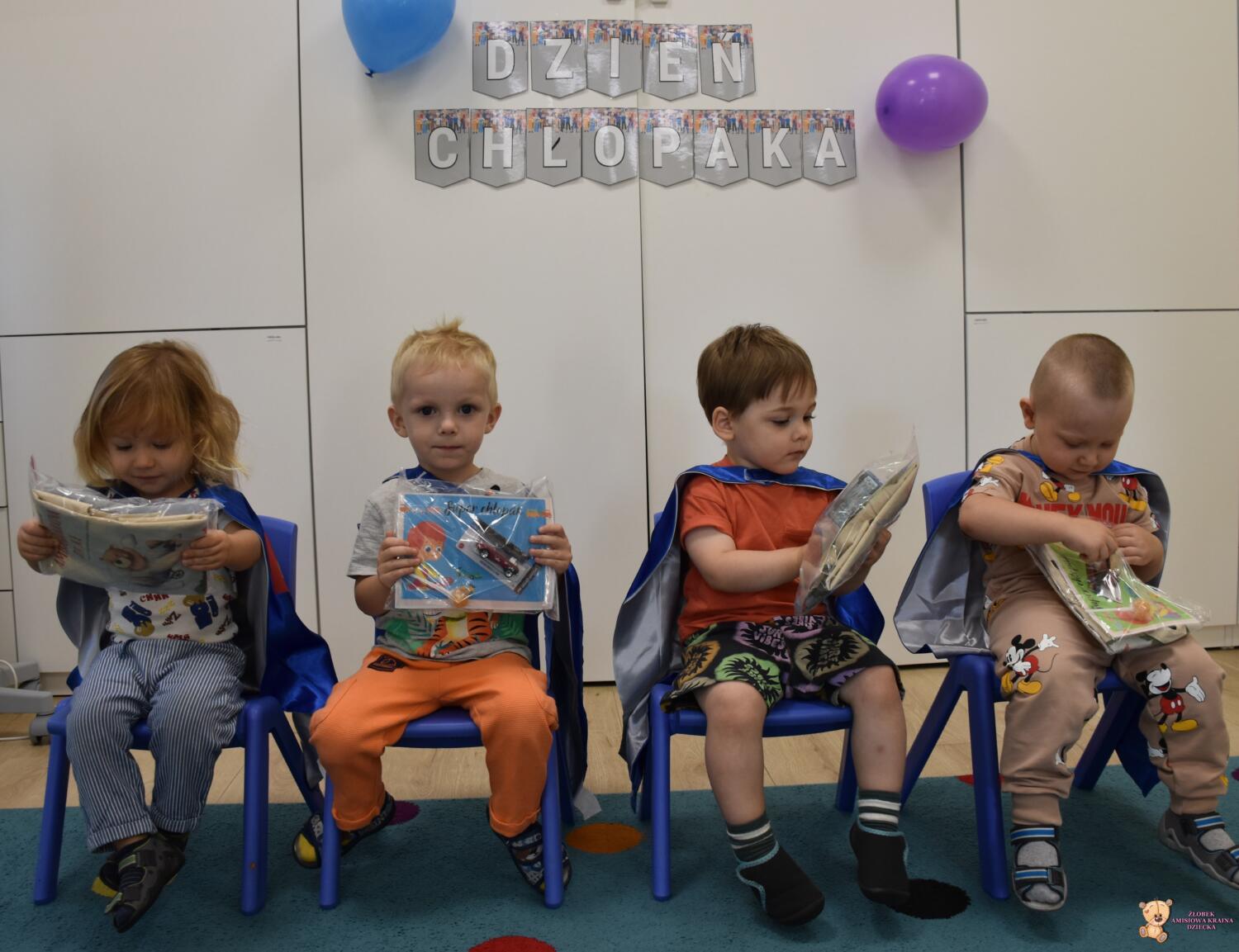 Dziś w AMIsiowej Krainie Dziecka świętowaliśmy Dzień Chłopaka Nasi kochani chłopcy zamienili się w superbohaterów, którzy w specjalnych pelerynach świętowali dzisiejszy poranek. Nasze słodziaki dostały upominki od dziewczynek, medale i kolorowe, balonowe miecze