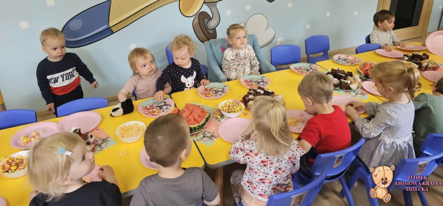 Dziś w naszym żłobku obchodziliśmy 3 urodziny Sefci Amisie zaśpiewały koleżance Sto lat, był prezent, kolorowy poczęstunek, balony i miła atmosfera Stefciu jeszcze raz spełnienia marzeń