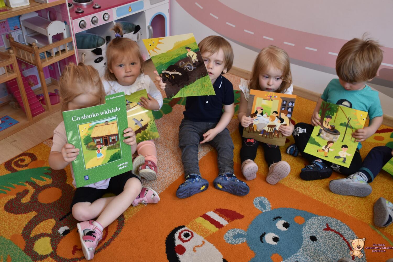 Dziś na zajęciach Bajkoterapii poznaliśmy bajkę „Co słonko widziało”. Opowiadaliśmy co mozemy zobaczyć za oknem ,gdy słonko wstaje.Co się budzi do życia,jak ptaszki śpiewają,jak na wsi ludzie pracują abyśmy mieli co jeść.To była bardzo wesoła bajka