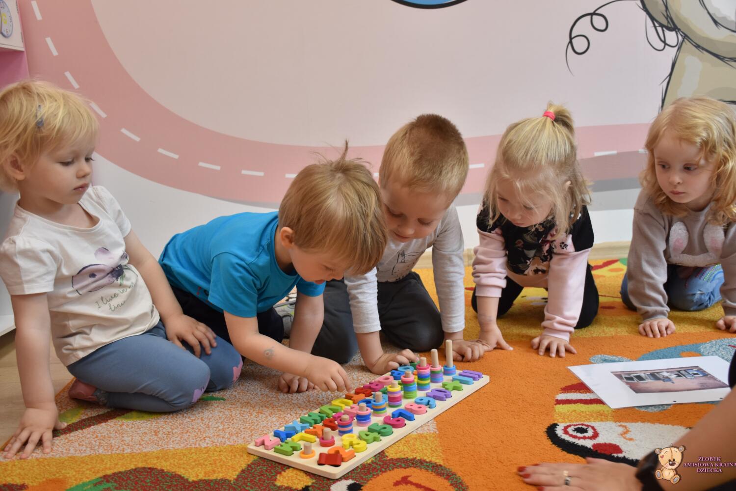 Dziś nasze Amisiaki poznały literę T, dzieci zapoznały się z wyglądem tej litery, kolejnym krokiem było odszukiwanie literki na drewnianej ukladance co sprawiło dzieciom dużo uśmiechu Wykonaliśmy też kolorowanki z truskawka, utrwalając kolory