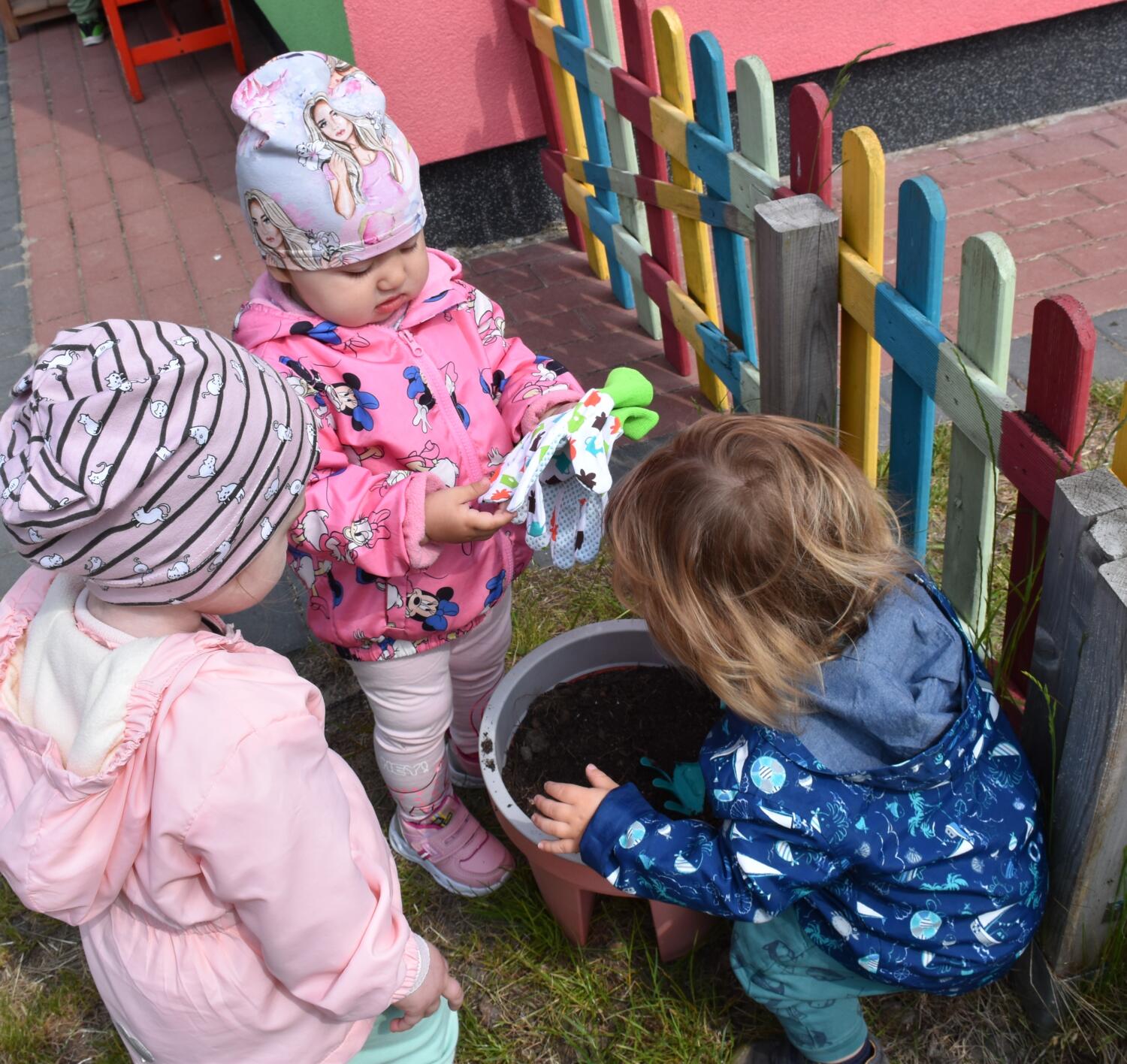 Dziś na zajęciach z metody Montessori sadziliśmy kwiaty przed naszym żłobkiem Były to pelargonie oraz goździki Amisie poznały akcesoria potrzebne do pracy w ogrodzie. Amisie tworzyły kompozycje wspólnie w grupach. Po skończonych pracach ogrodowych wolny czas spędziliśmy na placu zabaw