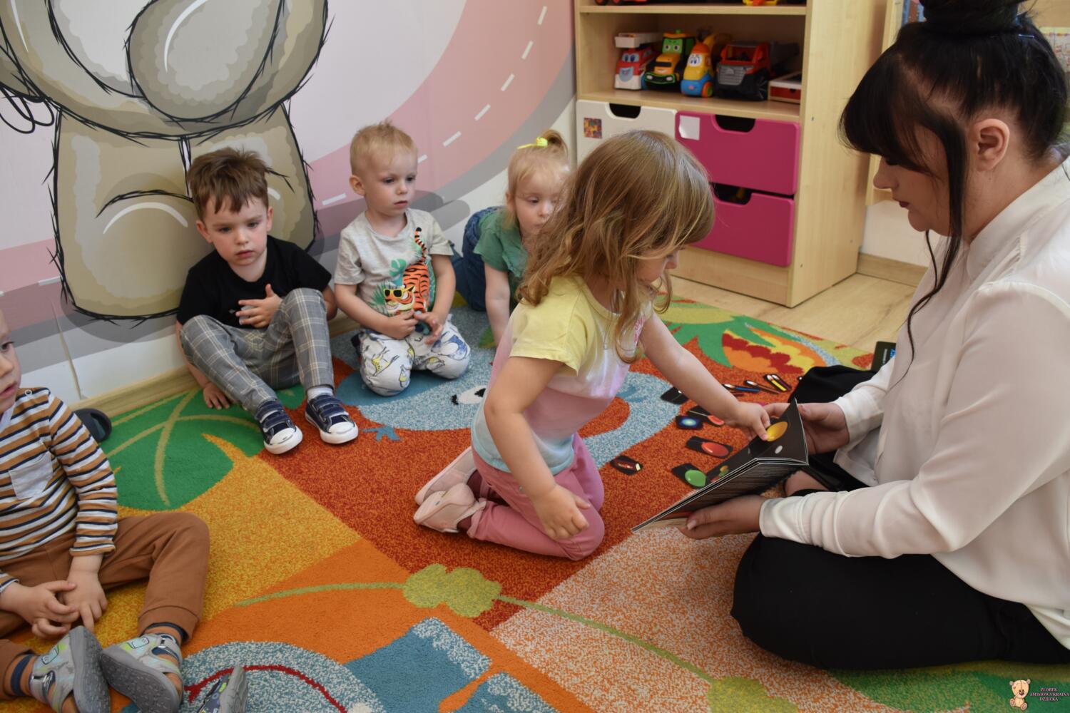 Dziś na logorytmice Hela i Tomek . Książeczki służą do stymulowania rozwoju mowy i są interaktywne . Ruchome części książeczki świetnie rozbudowują słownictwo i bogacą język