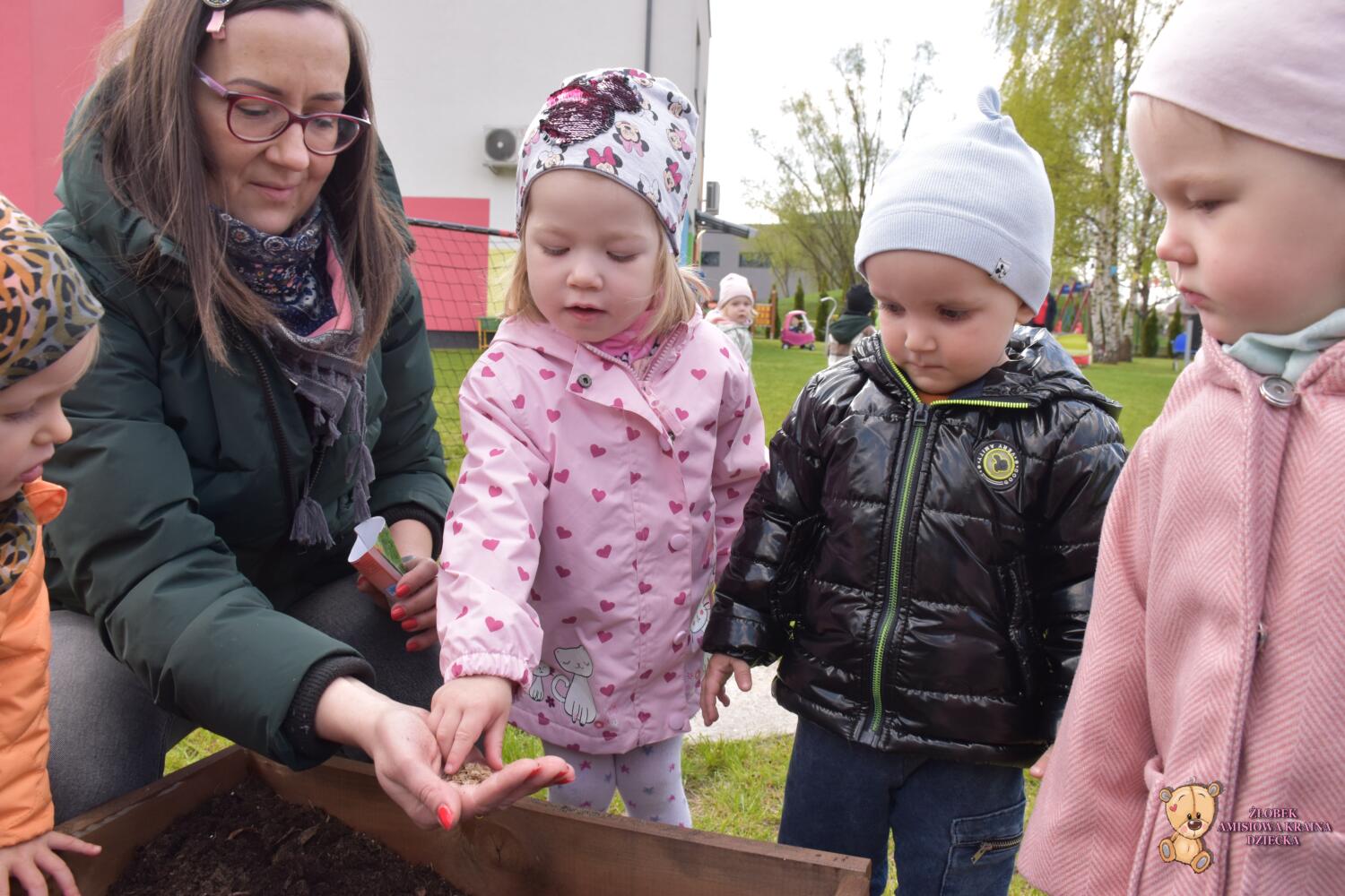 Dziś Amisie podczas zajęć z metody Montessori zadbały o warzywnik Najpierw poznały akcesoria potrzebne do pracy. Następnie zabrały się za prace porządkowe. Wyrywały chwasty, usuwały patyki Posiały koperek, nać pietruszki, szczypior oraz rzodkiewkę Na koniec podlały grządki wodą z konewki Po zajęciach nastał czas na zabawę w naszym ogrodzie