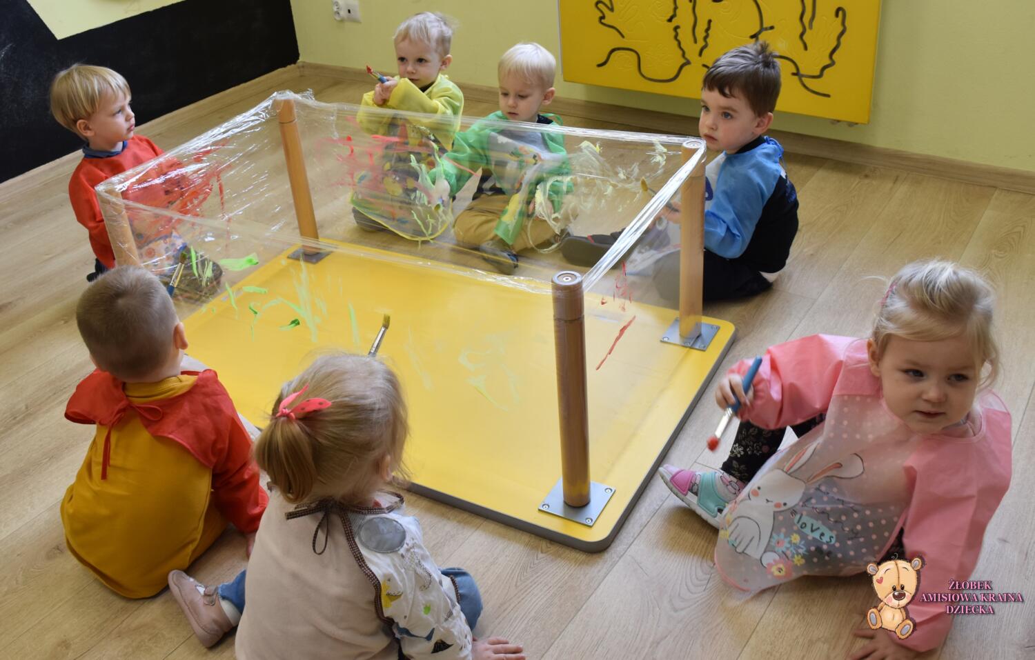Dzis w Amisiowej Krainie Dziecka Amisiaki malowały farbami na folii. To świetna zabawa plastyczna pobudzająca zmysły. Malowanie dostarczyło dzieciom głębokich bodźców dotykowych i wzrokowych tak bardzo istotnych dla zrównoważonego rozwoju młodego człowieka. Przede wszystkim była to super zabawa !