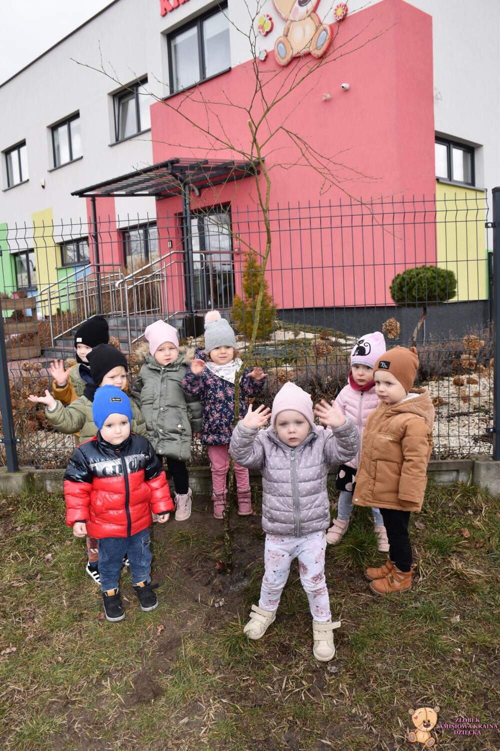 Dziś w naszym żłobku obchodziliśmy Światowy Dzień Wody .Nasze AMIsiaki rozmawiali z ciocia jak oszczędzać wodę .Grupa Niedźwiadków zasadziła z ciocia drzewko ,co było dla nich wielkim wydarzeniem .Za parę lat mogą odwiedzić Amisiową Krainę dziecka i zobaczyć jak pięknie rośnie .Na koniec wykonaliśmy pracę plastyczną ,przy której rozmawialiśmy jak oszczędzać wodę.