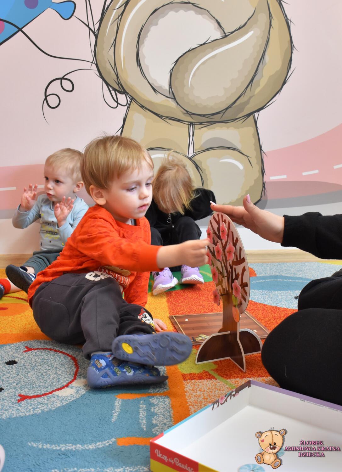 Dziś na logopedii cztery pory roku . To zabawka pozwalająca na duża swobodę polegająca na ubieraniu dużego drzewa i uprawianiu ogródka sezonowymi warzywami, owocami i kwiatami . Dzięki temu nasze maluchy ucza się nazw, oswajają z pojęciem cykliczności