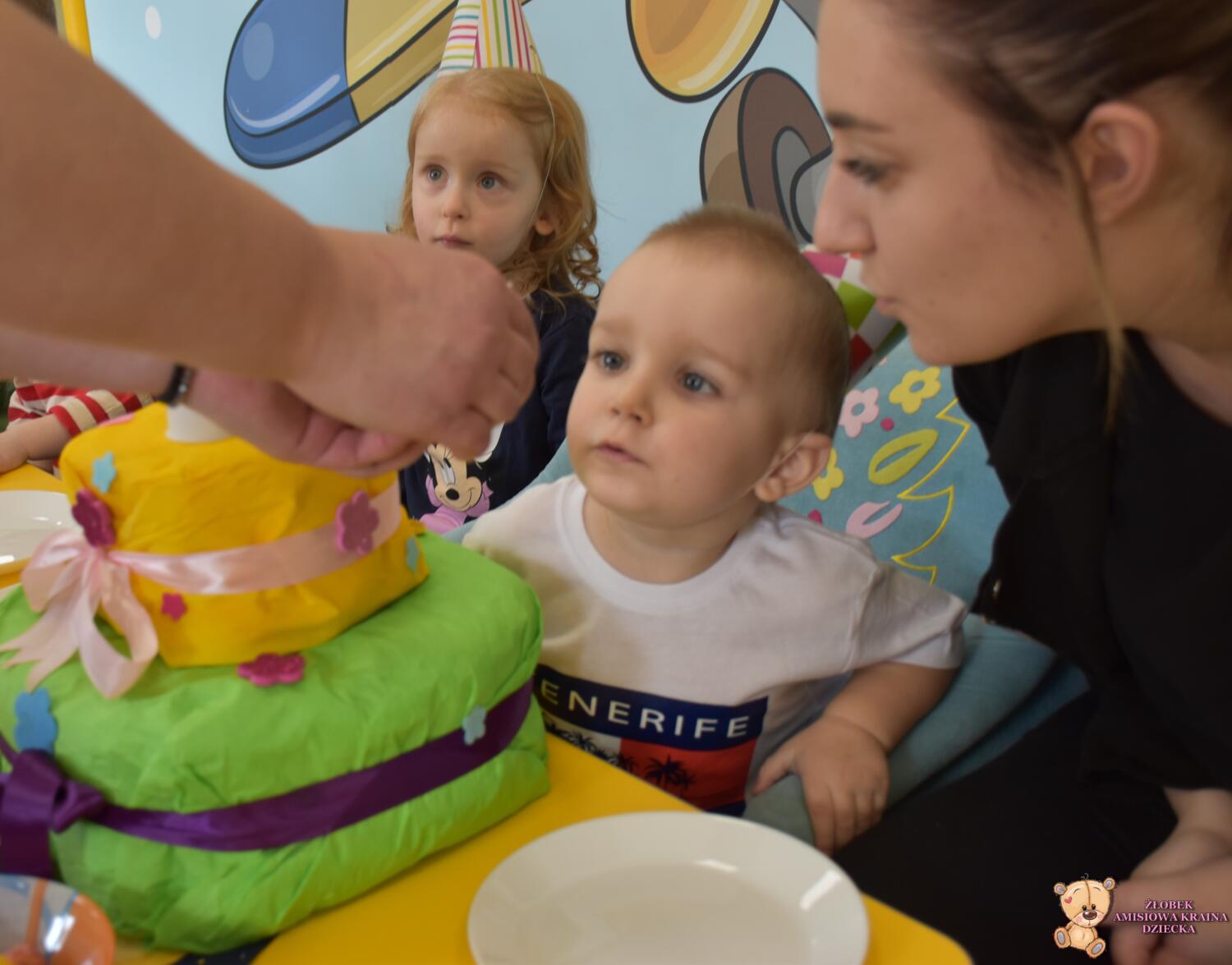 Dziś w naszym żłobku obchodziliśmy drugie urodziny Leosia. Z tej okazji odwiedziła nas mama Leosia.Wszyscy razem się przywitaliśmy ,zaśpiewaliśmy sto lat ,a nastepnię usiedliśmy do stołu .Jeszcze raz życzymy Ci Leosiu sto lat i dużo prezentów.