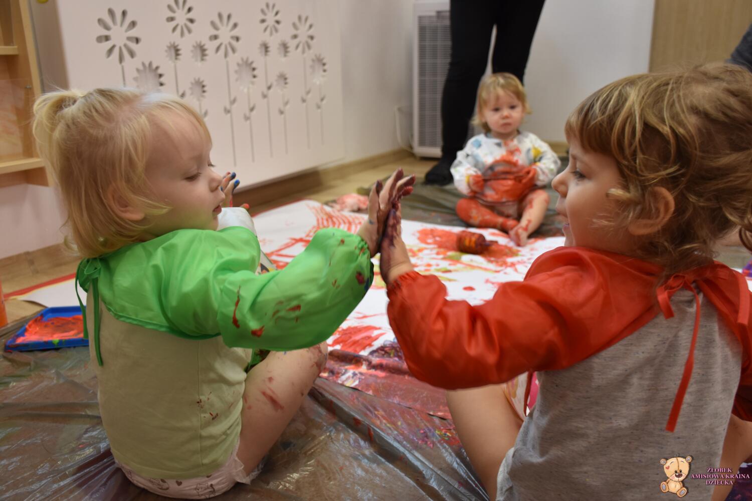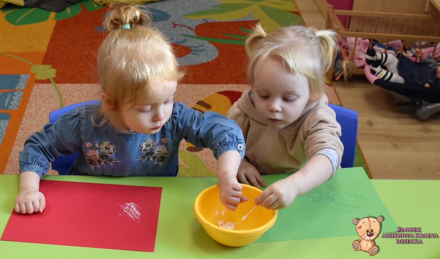 Dziś w AMIsiowej Krainie Dziecka odbyły się zajęcia sensoplastyki . Ciocia wyczarowała dla nas farby jadalne z jogurtu naturalnego i barwnika, które sami wymieszaliśmy i malowaliśmy pędzelkami. Niektórzy z nas malowali nawet rączkami. Dzieciom bardzo spodobała się ta technika malowania.